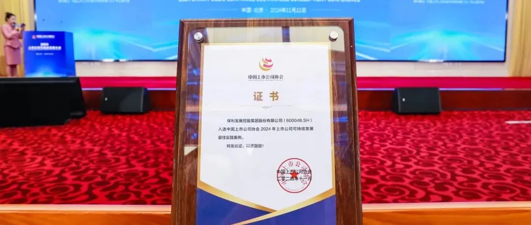 2024年11月,保利发展控股凭借在可捏续发展范围及董事会运作范围的优秀阐扬,入选“2024上市公司可捏续发展最好践诺案例”及“2024上市公司董事会最好践诺案例”。